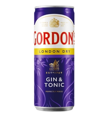 Aprašymas: Kadagio ir citrusinių vaisių skonio „Gordon's London Dry“ džinas meistriškai sumaišytas su toniku ir paruoštas gerti 250 ml talpos skardinėje. „Gordon’s London Dry“ džino gamyboje jau daugiau nei 250 metų laikomasi pradininko sukurtų receptų ir principų. „London Dry“ džino gamybai naudojamos tik pačios aukščiausios kokybės žaliavos ir pagal griežtą standartą šis džinas distiliuojamas tris kartus, taip siekiant užtikrinti džino grynumą. Šio džino gamybai naudojamos brangiausios pasaulyje kadagių uogos iš Toskanos: iš viso derliaus atrenkama tik apie 10 procentų pačių geriausių uogų. Šiam džinui pagaminti naudojamos tik natūralios žolelės, koriandrai, saldymedžio ir šventagaršvės šaknys bei citrinų, apelsinų ir cinamono žievelės.